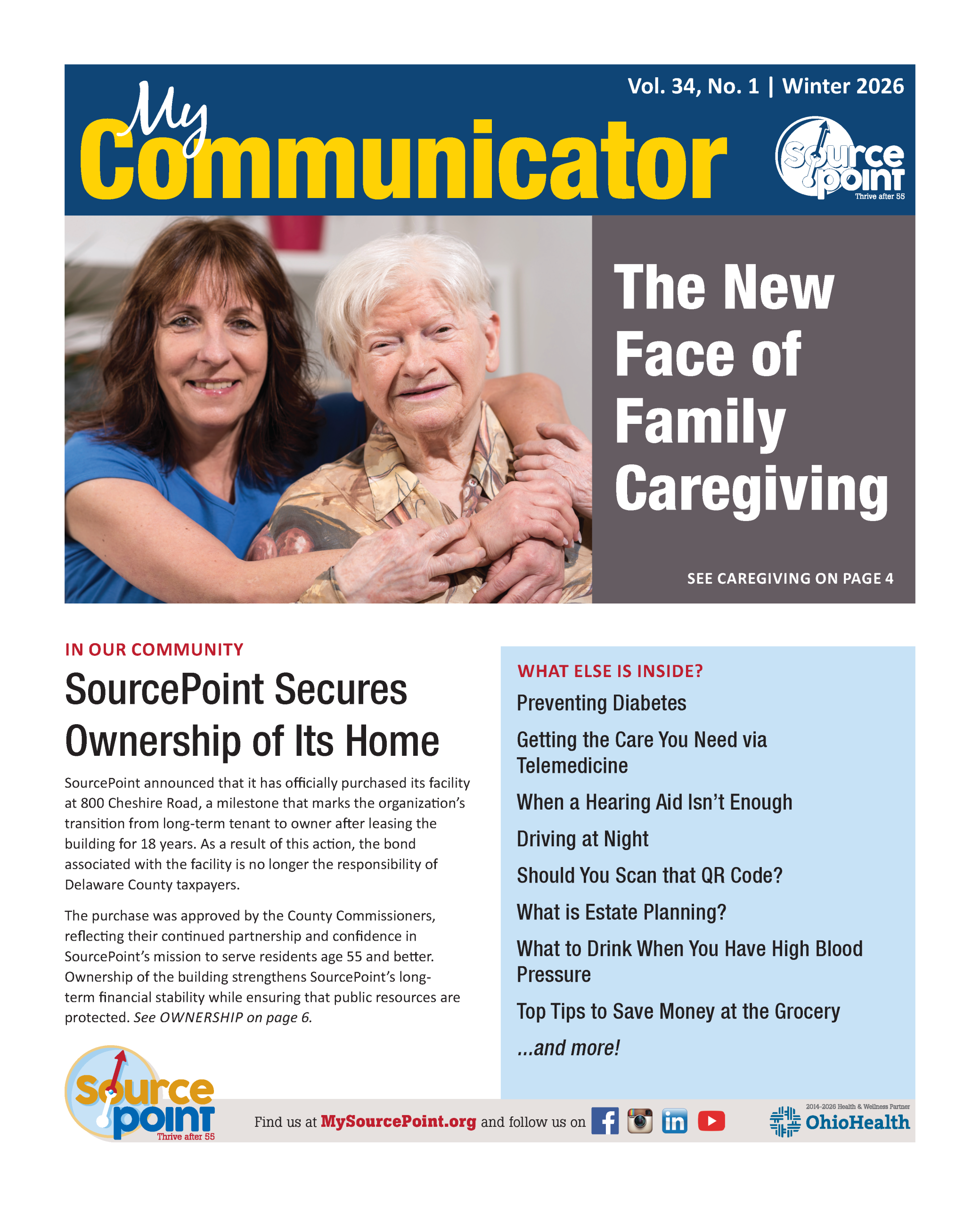 My Communicator is a 32-page, full-color newspaper for Delaware County adults ages 55 and older, as well as their families. Printed quarterly, it boasts a circulation of about 5,000 issues and is available for pick-up at over 50 locations throughout the county, including SourcePoint, libraries, senior living communities, health care facilities, and other nonprofit organizations. It is also available online at MySourcePoint.org and Issuu.com.